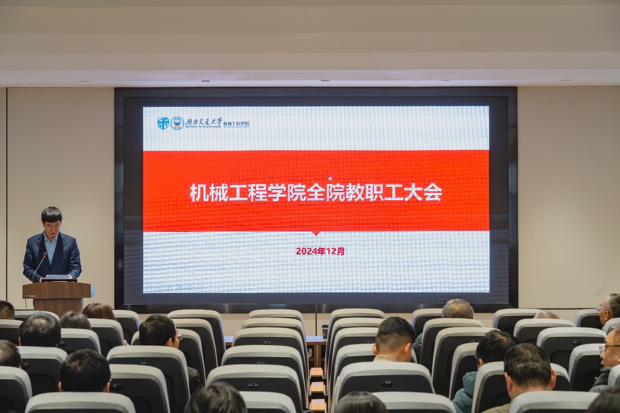 2024年12月26日下午,76net必赢线路检测中心在九里校区2号教学楼2530学术报告厅召开了全院教职工大会、76net必赢线路检测中心第三届教代会暨第四届工代会第四次会议,学院全体教职工参加了本次大会。大会主要内容包括“教书育人奉献奖”颁奖仪式,新进教职工入职仪式,听取和审议学院2024年度工作报告、学院2024年度财务报告,学院党建、班子暨领导干部2024年度述职测评等。
