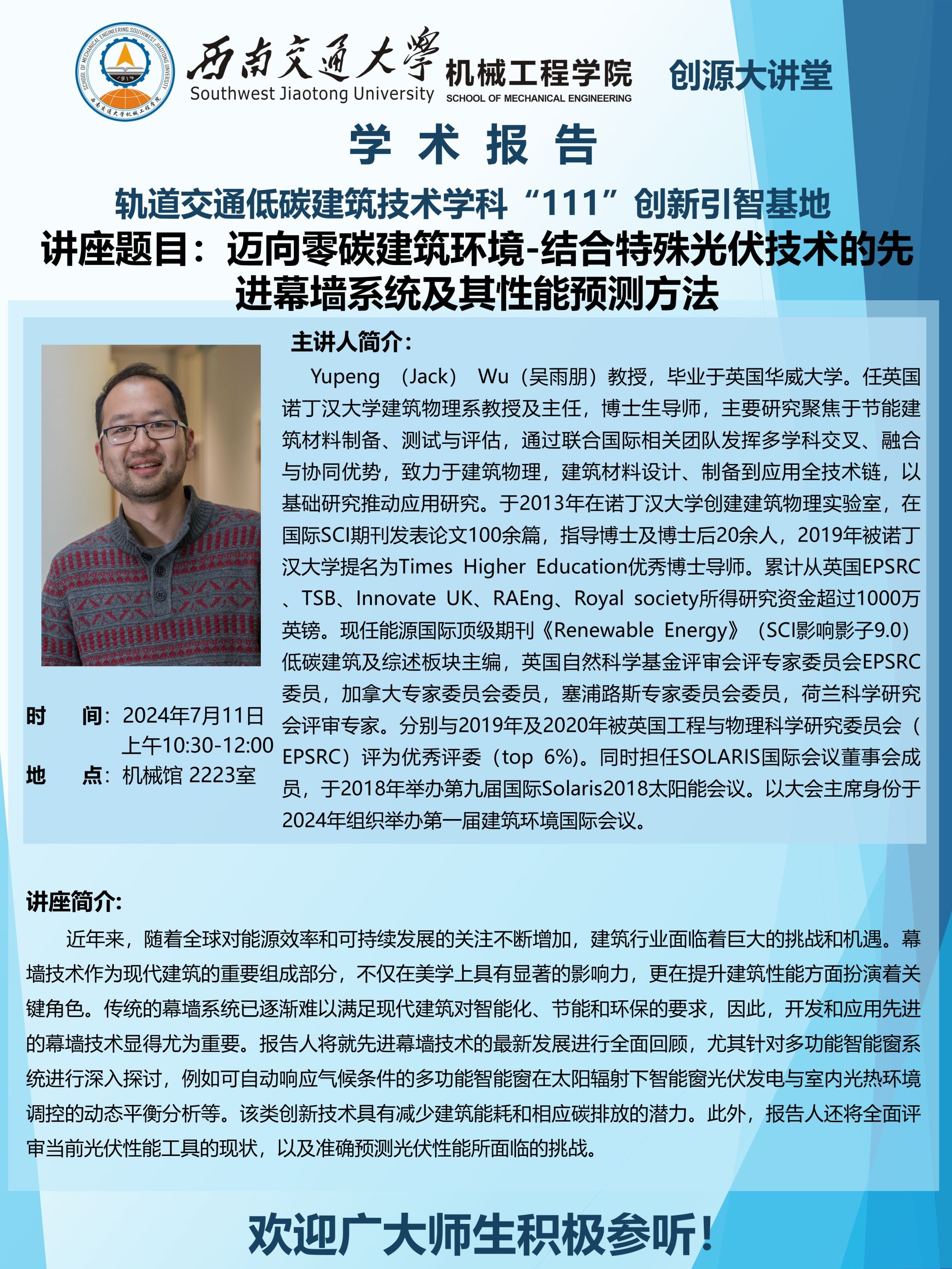 【创源大讲堂】迈向零碳建筑环境-结合特殊光伏技术的先进幕墙系统及其性能预测方法