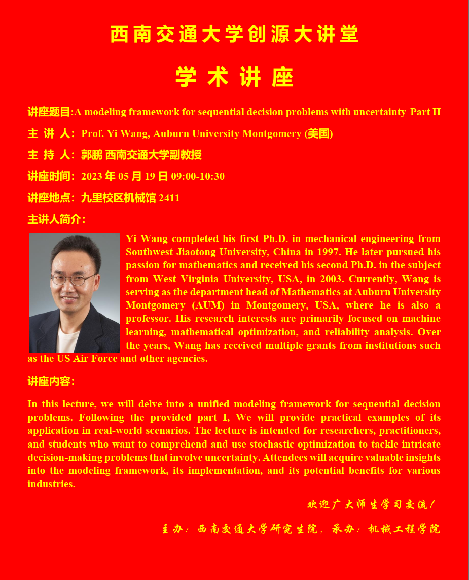 学术讲座:A modeling framework for sequential decision problems with uncertainty-Part II